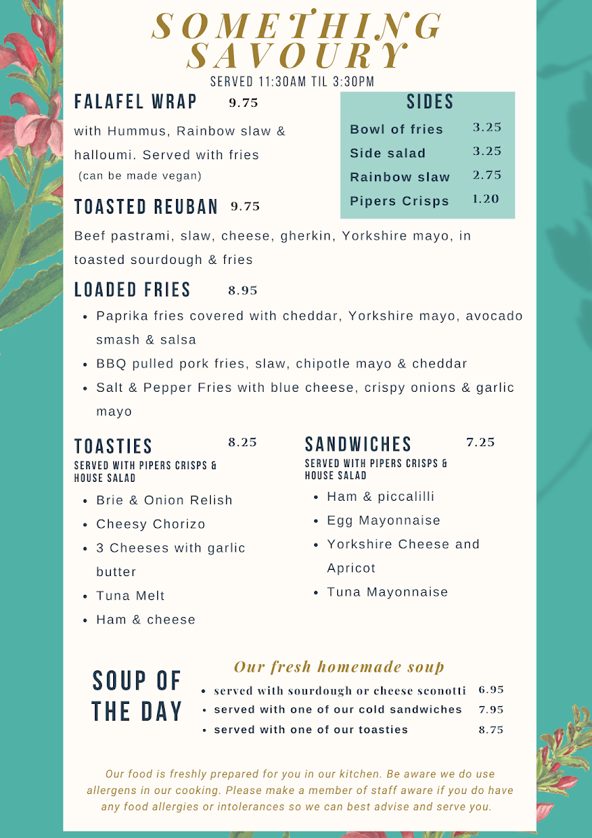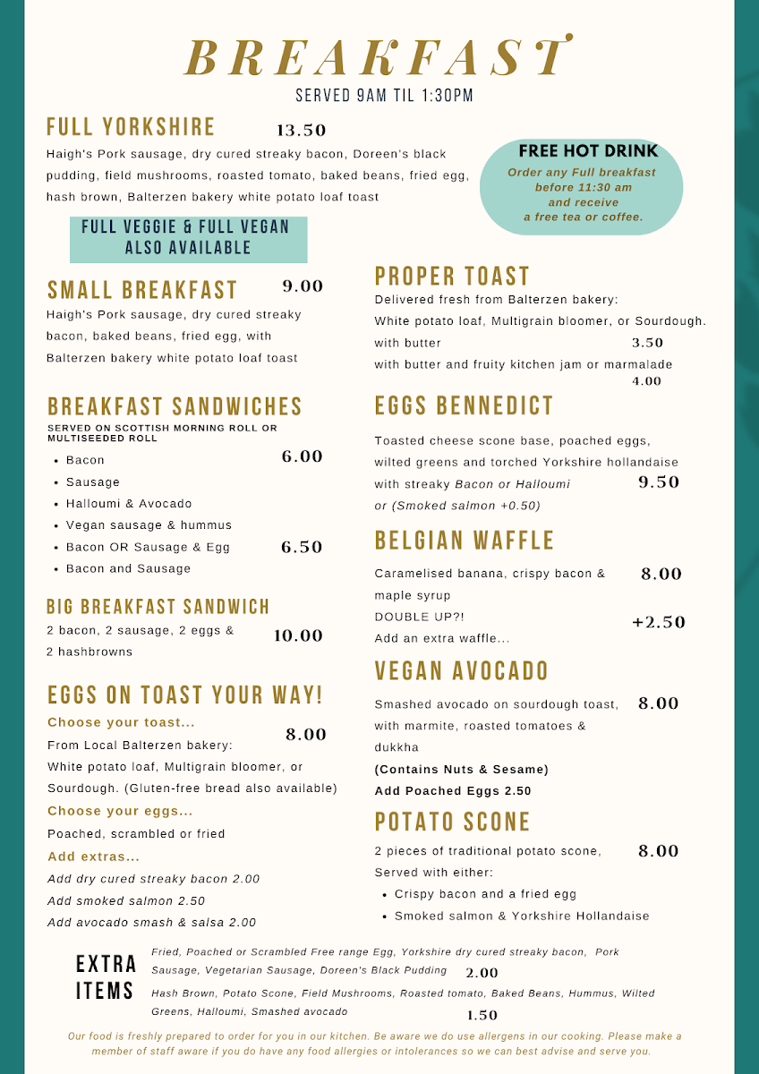 Welcome to Tea Time Café, a hidden gem located at 87 Market Pl, Thirsk. This delightful café offers an array of mouthwatering breakfast and lunch options. For breakfast, indulge in the classic Full Yorkshire Breakfast featuring local delicacies like Doreen's black pudding and dry cured bacon, or opt for the vibrant Full Veggie or Vegan Breakfast, both richly satisfying.